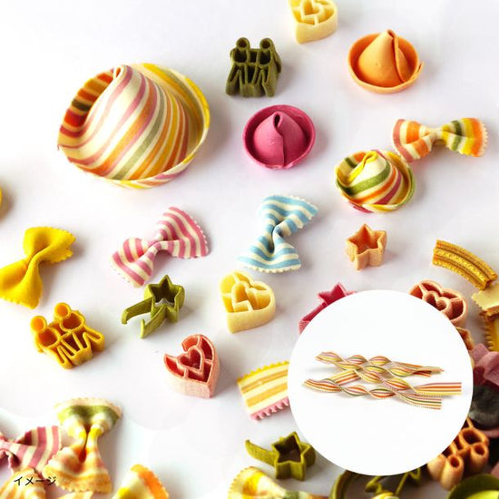すべて職人による手作り。1920年から続く伝統手法によってつくられ、地元イタリアでも、「美しく、楽しく、美味しいパスタ」として評判です。自然の恵みを愛し、食を楽しむ人々が、心をこめて作る、愛らしい色と形、小麦の豊かな風味広がるもちもちカラフルパスタが食卓へ笑顔を運びます。いつものパスタ料理はもちろん、スープやサラダ、お肉料理に添えるのもおすすめです。お弁当や、おもてなしお料理のデコレーションとしても大活躍。