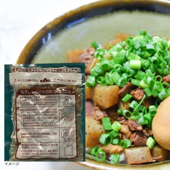 | 原材料名 | 【黒毛和牛ハンバーグ】 牛肉(国産)、ソテーオニオン(玉ねぎ、大豆油)、つなぎ(液卵、パン粉(小麦・乳成分・大豆を含む)、牛乳)、食塩、小麦粉、コショウ、ナツメグ 【黒毛和牛牛丼】 牛肉(国産)、玉葱(国産)、たれ(しょう油、上白糖、みりん、その他)、(一部に小麦・大豆・牛肉・鶏肉・りんごを含む) ※本品製造工場では乳・卵を含む製品を製造しております。 【牛すじ煮込】 牛すじ肉(米産、国産)、こんにゃく(国内製造)、大根(国産)、発酵調味料、醤油(小麦・大豆を含む)、しょうが、かつおエキス、にんにく、唐辛子/安定剤(加工でんぷん)、水酸化カルシウム 【ビーフシチュー】牛肉(アメリカ産)、ビーフシチューソース(デミグラスソース、ビーフエキス調味料、乳製品、砂糖、味噌、食塩)/カラメル色素、増粘剤(加工澱粉)、調味料(アミノ酸等)、加工澱粉、焼成カルシウム、(一部に乳成分・小麦・大豆・牛肉・豚肉・鶏肉を含む) |