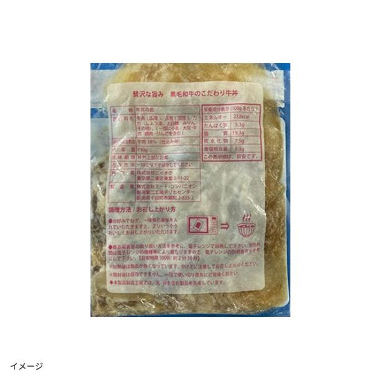 | 栄養成分 | 【黒毛和牛ハンバーグ】 (100gあたり)エネルギー:228.3kcal、たんぱく質:13.5g、脂質:16.0g、炭水化物:6.8g、食塩相当量:1.0g 【黒毛和牛牛丼】(100gあたり)エネルギー:233kcal、たんぱく質:5.3g、脂質:19.3g、炭水化物:7.5g、食塩相当量:1.3g 【牛すじ煮込】(100gあたり)エネルギー:80kcal、たんぱく質:12.9g、脂質:2.2g、炭水化物:2.2g、食塩相当量:0.5g 【ビーフシチュー】(100gあたり)エネルギー:239kcal、たんぱく質:8.5g、脂質:19.6g、炭水化物:5.2g、食塩相当量:0.6g |