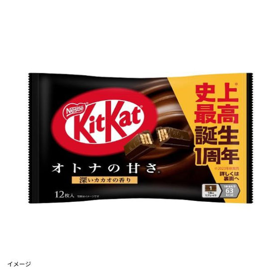 1973年に日本で発売されて以来、多くの方々に愛されてきたキットカット。2023年に日本発売50周年を迎えるに当たり、この先の50年間も引き続き愛される製品を目指して、キットカット史上最高のリニューアルを実現しました。 新しいキットカットは、その特長であるウエハースを改良しました。レシピの変更だけでなく、ウエハースとチョコレートの配分も見直すことで、音までおいしい史上最高のサックサク食感を実現しました。ぜひ、史上最高のサクッサク食感とほろ苦黒ビスケットが練り込まれたミルクチョコレートが生み出す、深く本格的なオトナの味わいをお楽しみください。