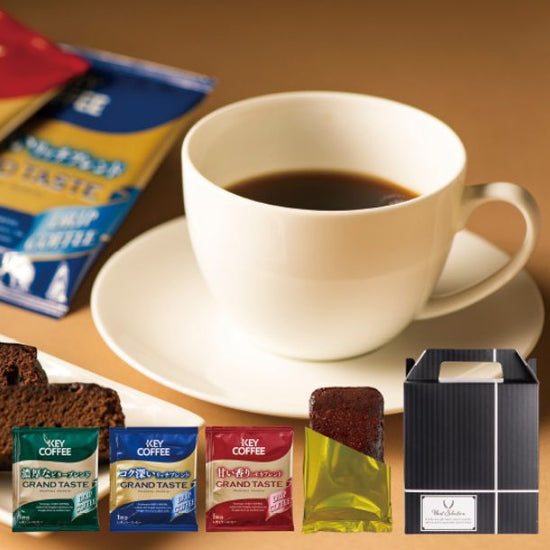 | 注意事項 | 開封後は、お早めにご賞味ください。 【ドリップコーヒー】熱湯を扱いますので安定した場所で使用し、火傷には十分ご注意ください。 【チョコレートケーキ】この製品には脱酸素剤が入っています。 |