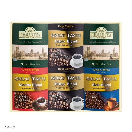 コーヒーと紅茶のセットKEYCOFFEE ドリップコーヒー、アーマッド アールグレイ紅茶の詰め合わせです。