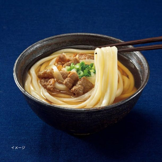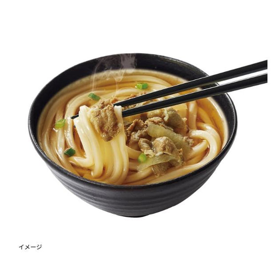 甘辛く味付けしたやわらかな牛肉とたまねぎ、ねぎをのせた、食べ応えのある肉うどん。