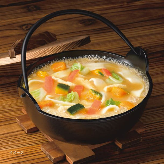 神州一味噌に、かつおと利尻昆布の特製だしを合わせた深みのあるつゆが、国産小麦を使用した特製平打ち太麺と絡み、煮込むほどにおいしさが広がります。