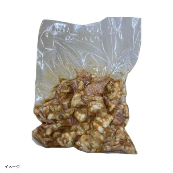 国産牛(ホルス、交雑種)の脂付きしま腸を焼肉サイズにカット専用のホルモンたれと混ぜ合わせて味付けしております。 解凍して焼くだけで、本格的なホルモン焼肉を召し上がれます。