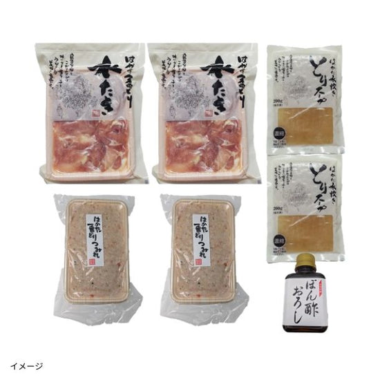 | 内容量 | 5人前(もも切身:300g×2、つみれ:180g×2、とりがらスープ:200g×2、おろしポン酢:170ml)/セット |