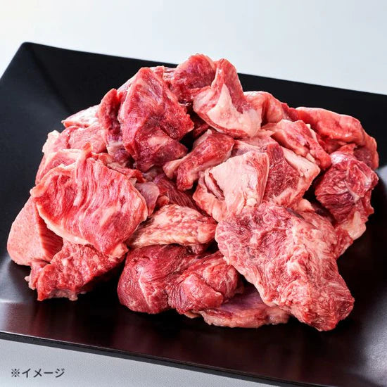 ロースや赤身など様々な部位をゴロゴロとした大きめのサイズにカット。 一般的なスーパーで売っている煮込み用のお肉のサイズよりも、さらに1周り・2周り大きいくらいのサイズ感でボリューム感たっぷりです。 シチューやカレーなどの煮込み料理に適しており、コトコト煮込みと牛肉の脂の美味しさがじゅわっと溢れ出す柔らかなお肉を楽しむことができます。