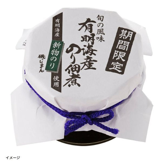 有明海産の新物のりを100%使用したのりの佃煮です。有明海産ののりの特徴は、色艶の美しさ。艶のある黒紫色をしていて口どけがよく香ばしさがあり、トロけるような甘みがあるのが特徴的です。新物の味・姿・香りをお楽しみください。