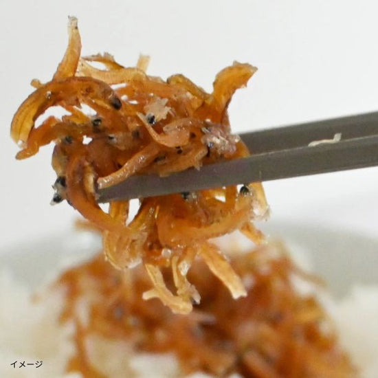 | 原材料名 | ちりめん(韓国製造、国内製造)、山椒の実、醤油(小麦・大豆を含む)、砂糖、発酵調味料、食塩/ソルビット、調味料(アミノ酸等)、酸味料、保存料(ソルビン酸K) ※本製品で使用しているしらすちりめん(いわしの稚魚)は、エビ、カニが混ざる漁法で採取しています。 |