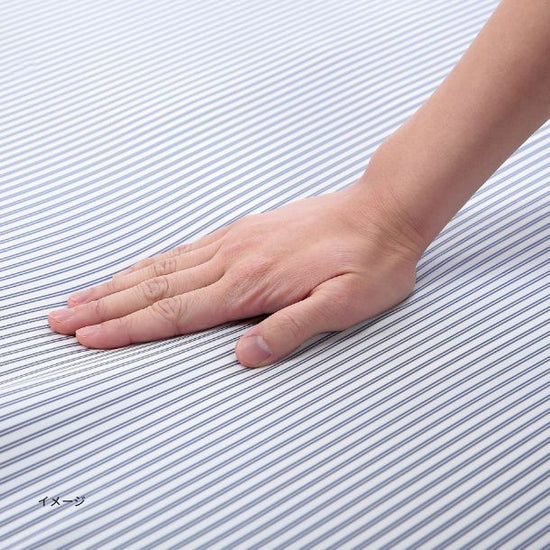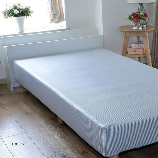 触るとひんやり、接触冷感タイプのボックスシーツマットレスにピタッとフィットするから見た目もきれい。全周ゴム入り仕様で着脱しやすいです。