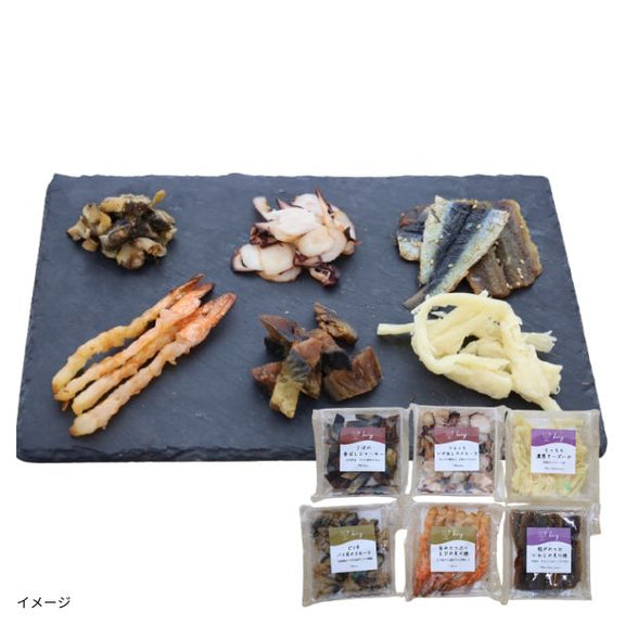 旨みたっぷりのえびの炙り焼き、ピリ辛のスモークバイ貝、濃厚なチーズいか、香ばしいさばジャーキー、コリコリとしたイカ足のスモーク、脂がのったいわし炙り焼など、まさに『ベストセレクション』と呼ぶにふさわしい、個性豊かな味わいの6品を厳選しました。