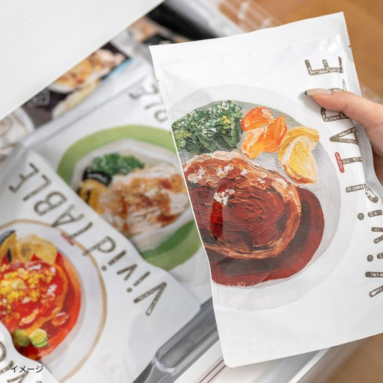 | 調理方法 | 商品を冷凍のまま外袋から取り出し、貼り合わせの面を上にして耐熱皿にのせ、ラップをかけずに電子レンジで加熱してください。加熱後、ソースをからめてお召し上がりください。 【調理時間の目安】500W:6分、600W:5分 |