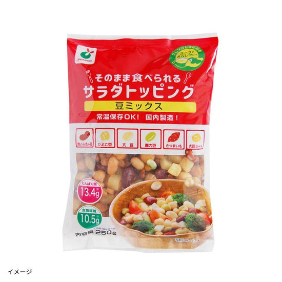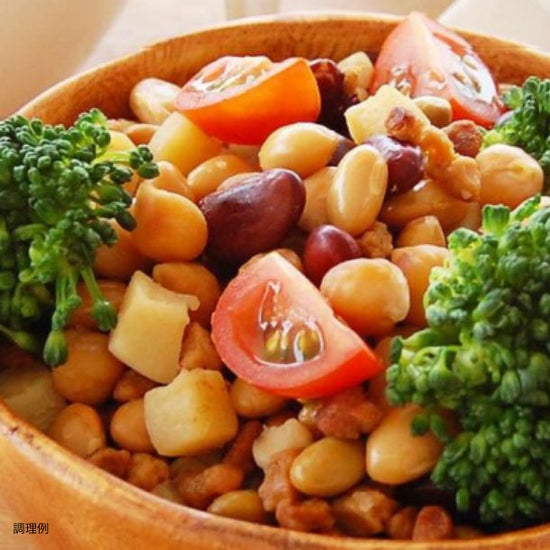 | 原材料名 | 赤いんげん豆、ひよこ豆、大豆、青大豆、さつまいも、脱脂大豆加工品(粒状植物性たん白)、りんご果汁、食塩、(一部に大豆・りんごを含む) |