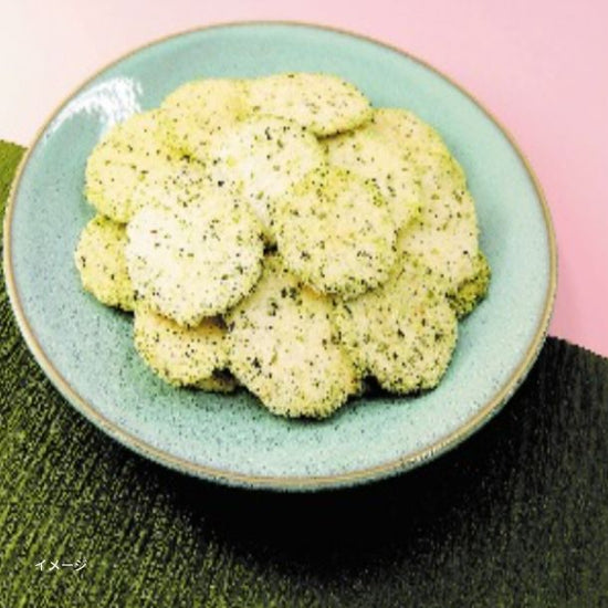 パリッと薄焼きのせんべいに磯香るあおさをたっぷりまぶしました。