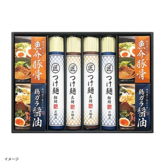 | 内容量 | 細つけ麺:180g×2、太つけ麺:180g×2、鶏ガラ醤油つけ麺つゆ:27g×4、魚介豚骨つけ麺つゆ:40g×4/セット |