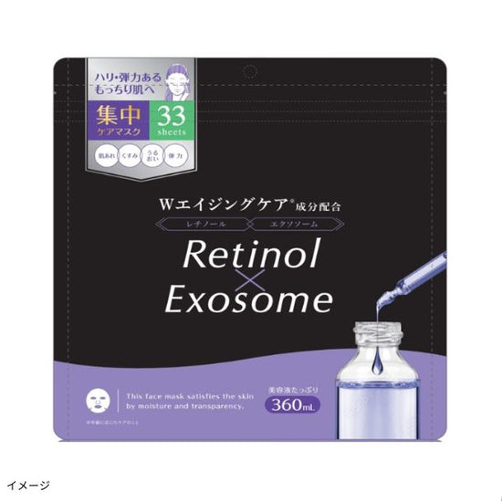 33枚の大容量タイプ。レチノール(保湿・整肌成分)、エクソソーム(整肌成分)、うるおいのある肌印象へNMN配合(整肌成分)。