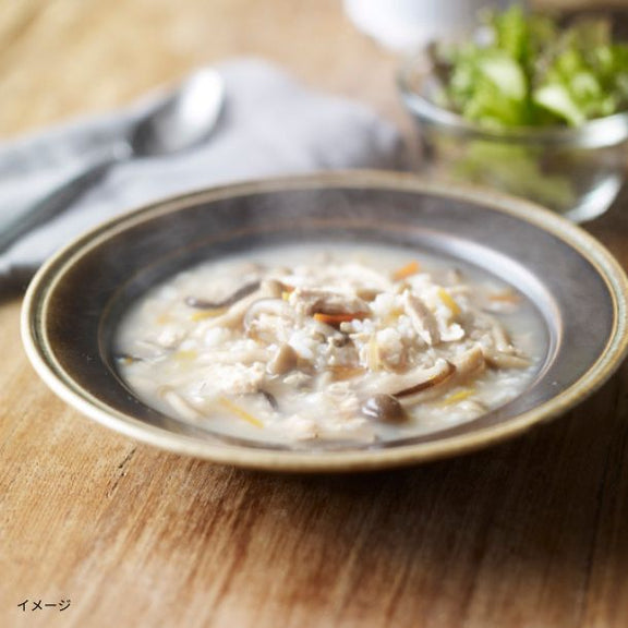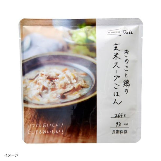 きのこがたっぷり入った玄米ともち麦のぷちぷち食感、お出汁が効いたやさしいスープごはんに仕上げました。 封を切ってそのままお召し上がりいただけます。