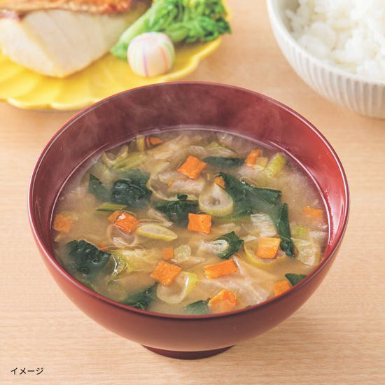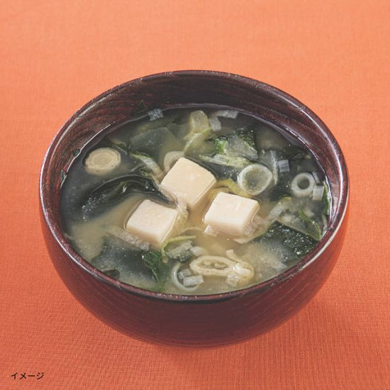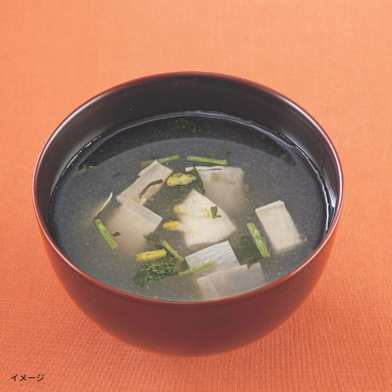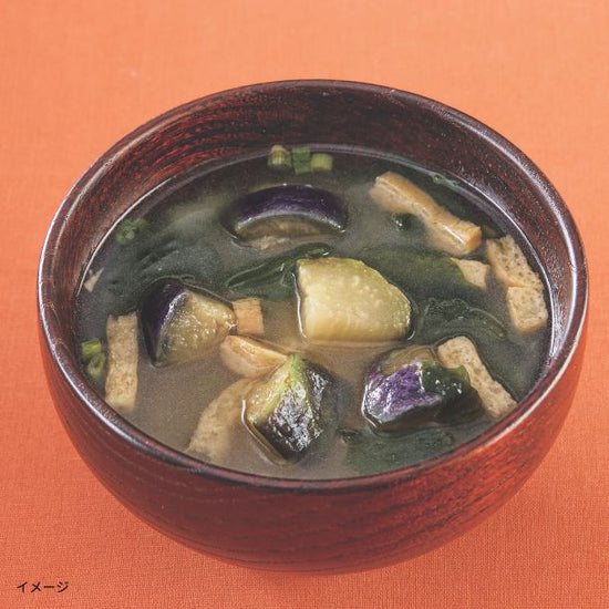 | 栄養成分 | 【揚げ茄子のお味噌汁】(1食あたり(7.2g))エネルギー:31kcal、たんぱく質:1.6g、脂質:1.6g、炭水化物:2.7g、食塩相当量:1.2g 【豆腐のお味噌汁】(1食7g当たり)エネルギー:26kcal、たんぱく質:1.8g、脂質:0.8g、炭水化物:2.9g、食塩相当量:1.3g 【野菜のお味噌汁】(1食(7g)当たり)エネルギー:25kcal、たんぱく質:1.4g、脂質:0.5g、炭水化物:3.7g、食塩相当量:1.1g 【贅沢ゆばのお吸い物】(1食(5.4g)当たり)エネルギー:18kcal、たんぱく質:1.1g、脂質:0.4g、炭水化物:2.6g、食塩相当量:1.2g 【はまぐりのお吸い物】(1袋(5g)当たり)エネルギー:15kcal、たんぱく質:1.0g、脂質:0.08g、炭水化物:2.7g、食塩相当量:1.0g 【しょうがと根菜のスープ】(1食(5g)当たり)エネルギー:16kcal、たんぱく質:0.6g、脂質:0.1g、炭水化物:3.2g、食塩相当量:0.9g 【国産野菜とたまごのスープ】(1食(8.1g)当たり)エネルギー:29kcal、たんぱく質:1.1g、脂質:0.5g、炭水化物:5.1g、食塩相当量:1.2g |
