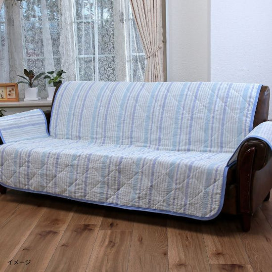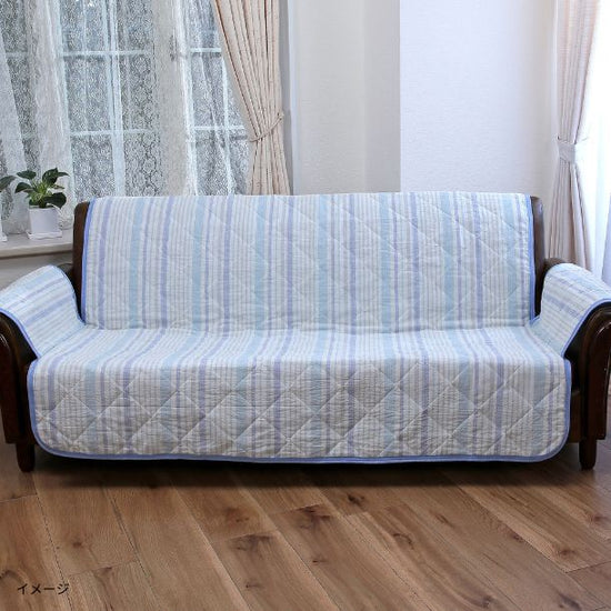 シャリっとしたしじら織り特有の肌ざわりが心地よいです。お手持ちのソファーの上に乗せるだけで夏仕様に衣替え。こちらの商品は肘付きのソファーに対応しています。