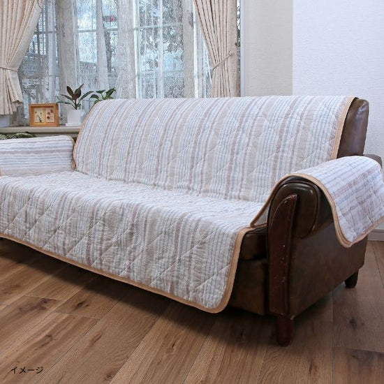 サラッと爽快で夏に快適な綿100%しじら織りを表地に使用シャリっとしたしじら織り特有の肌ざわりが心地よいです。お手持ちのソファーの上に乗せるだけで夏仕様に衣替え。こちらの商品は肘付きのソファーに対応しています。