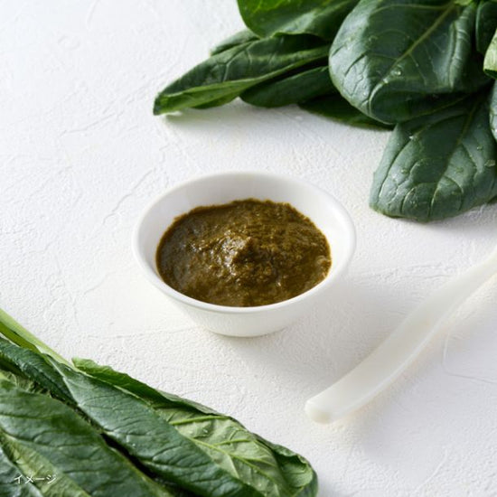 離乳食としても馴染みがあり、栄養的な側面からも人気の小松菜。えぐみが出がちな葉物野菜ですが、素材を選び、丁寧に仕上げることで、素材のおいしさを引き出した味わいに。