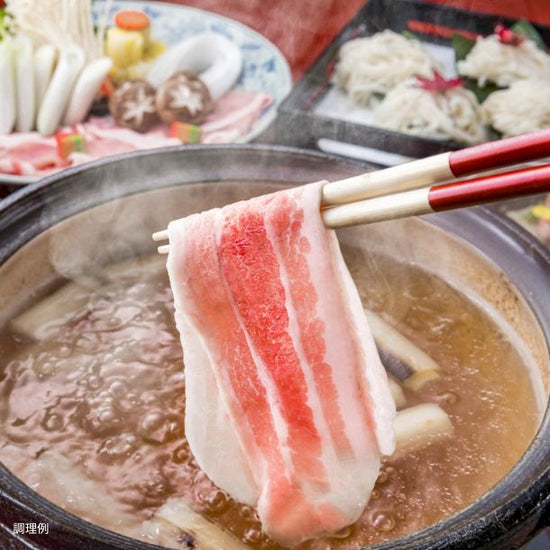 赤身と脂身が美しい層をなすバラ肉は、黒豚ならではの甘く、上質な脂を最も堪能できる部位です。熱い出汁にくぐらせると、じんわりと溶け出した脂が肉全体を包み込み、 驚くほどジューシーでまろやかな食感に。口に入れた瞬間のとろけるような口どけは、まさに至福のひとときです。