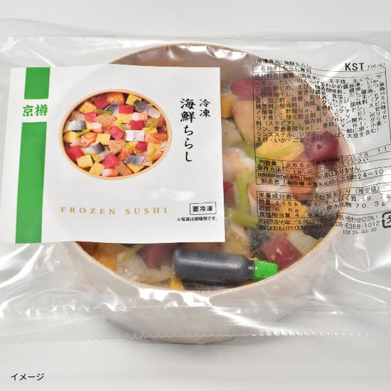 | 栄養成分 | 【海鮮ちらし】(1包装あたり)エネルギー:415kcal、たんぱく質:19.7g、脂質:6.6g、炭水化物:70.3g、食塩相当量:4.9g 【うなぎちらし】(1包装あたり)エネルギー:568kcal、たんぱく質:20.6g、脂質:19.2g、炭水化物:78.1g、食塩相当量:3.6g 【五目ちらし】(1包装あたり)エネルギー:403kcal、たんぱく質:10.8g、脂質:4.6g、炭水化物:79.7g、食塩相当量:3.0g |