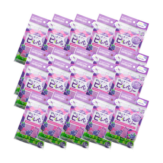 | 原材料名 | 砂糖混合ぶどう糖果糖液糖(国内製造)、甜菜糖、濃縮コンコードグレープ果汁、デキストリン、ビルベリーエキス末、こんにゃく粉/酸味料、ゲル化剤(増粘多糖類)、香料、マリーゴールド色素、V.B12 |
