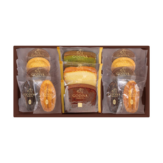 | 内容量 | ケーク3個(ショコラ、抹茶、ショコラ ブラン エ ノワドゥココ:各1個)、カカオフィナンシェ4個(ショコラ・ジャンドゥーヤ:各2個)、フールセック6枚(ホワイトチョコレート:2枚、ダークチョコレート:4枚)/ 箱 |