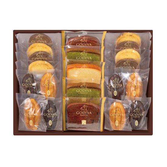 | 内容量 | ケーク:5個(ショコラ、抹茶:各2個、ショコラ ブラン エ ノワドゥココ:1個)、カカオフィナンシェ:8個(ショコラ・ジャンドゥーヤ:各4個)、フールセック:8枚(ホワイトチョコレート、ダークチョコレート:各4枚)/ 箱 |
