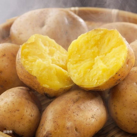 鮮やかな黄色と甘味が特長コロコロの姿、そしてさつまいもを彷彿とさせるホクホク感とバターのような濃厚さで、まさに贅沢な味わいのブランドじゃがいもです。