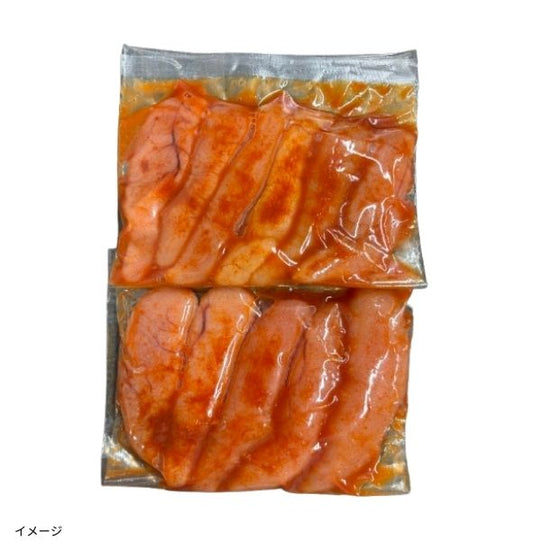 | 原材料名 | すけとうだらの卵巣(ロシア又は米国)、食塩、発酵調味料、唐辛子、かつお節エキス、こんぶエキス、米酢、魚醬、ゆず胡椒、酵母エキス/調味料(アミノ酸等)、甘味料(ソルビット)、酸化防止剤(V.C)、ナイアシン、発色剤(亜硝酸Na)、酵素 |