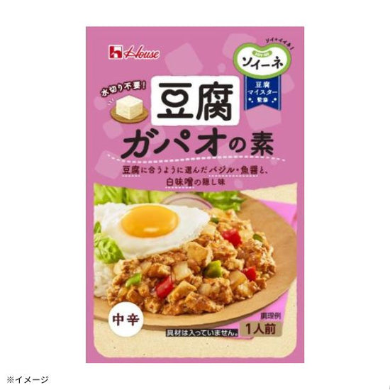 【豆腐ガパオの素】魚醤(タイ製造)、水あめ、植物油脂、デキストリン、しょう油、みそ、砂糖、でんぷん、オイスターソース、ガーリックペースト、豆板醤、食塩、唐がらし、バジルペースト/調味料(アミノ酸等)、カラメル色素、乳化剤、香料、(一部に小麦・大豆を含む)