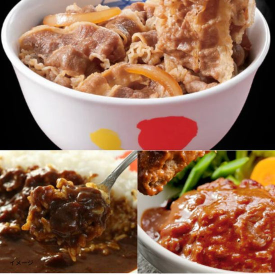| 内容量 | ブラウンソースハンバーグ80g×7食、プレミアム牛めしの具135g×7食、カレー180g×7食/セット |