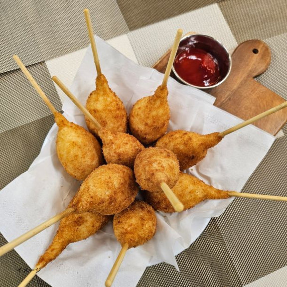 | 原材料名 | 衣(小麦粉調整製品(小麦粉、砂糖、もち米粉、粉乳、食塩)、小麦粉、パン粉、砂糖、鶏卵、マーガリン、とうもろこし粉、食塩)、チーズ、揚げ油(大豆油)/香料、pH調整剤、加工でん粉、膨張剤、着色料(カロテン)、酸味料、(一部に小麦・乳成分・卵・大豆を含む) ※本品製造工場ではえび・かに・そば・落花生・いか・くるみ・さば・鶏肉・ももを含む製品を製造しています。 |