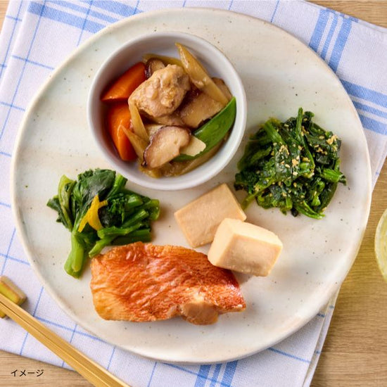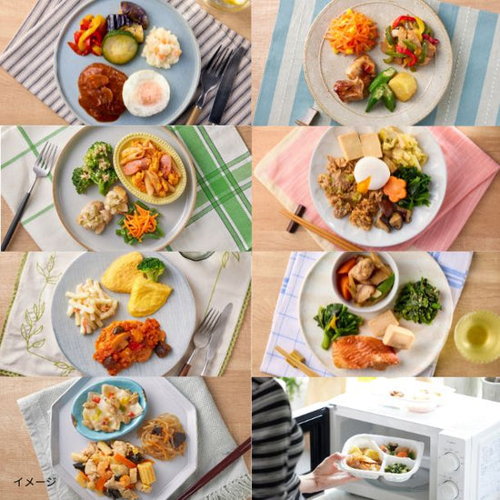| 内容量 | ごちそうロコモコ ハンバーグ、 やみつき照り焼きチキン、 レモンスパイス薫る さっぱり蒸し鶏、 やさしい味の 和風すき煮、 白身魚の地中海風トマト煮、 ふっくら赤魚のやさしい煮付け、 ごろごろ野菜の八宝菜/セット |