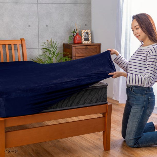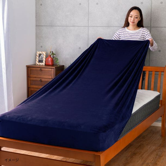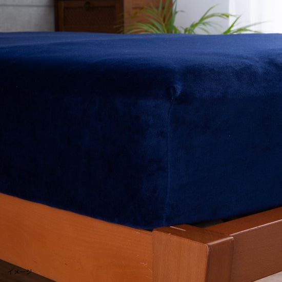 「ベロア調のびのびシーツ ダブル」ネイビー×2枚