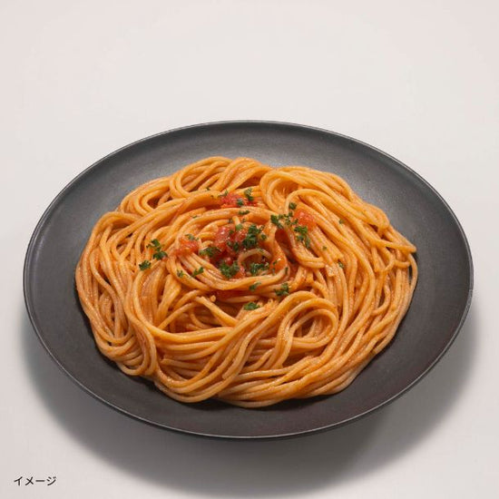 ゆでたパスタにソースをあえるだけの簡単トマトクリームパスタ半生めんなので、ゆで時間も短くすみます。