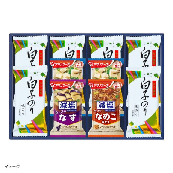 味之庵 アマノフーズ&白子のりアマノフーズの減塩タイプみそ汁と白子のり味のりを詰合せました。
