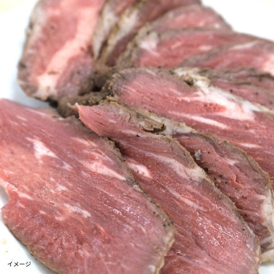 やわらかいお肉をお楽しみいただけるたローストビーフ本商品は、希少部位であるトモサンカクを使用した特定加熱食肉製品のローストビーフです。特定加熱ならではの肉の食感、風味、やわらかさが特徴で、褪色しにくいように製造されています。