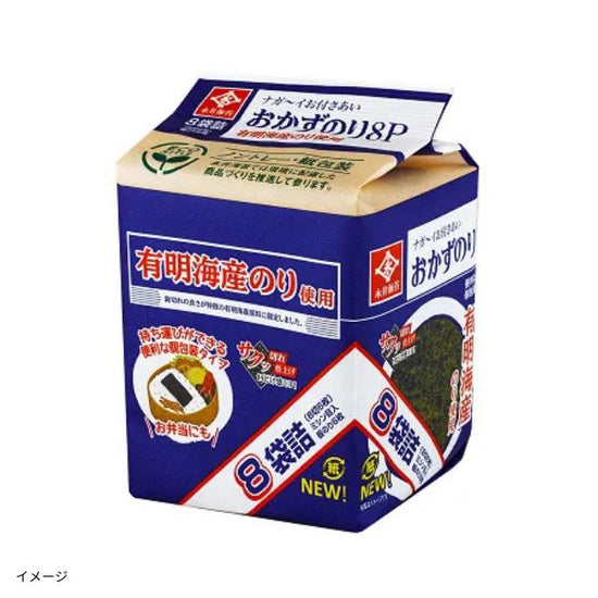 有明海産原料の海苔を使用した味付のり小分けタイプの味付海苔はお弁当や朝、夕食のおかずに最適です。