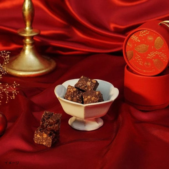 香ばしいトフィーを砕いてチョコレートに混ぜ込んだ、食感も楽しめるお菓子です。濃厚なカカオとキャラメルのやさしい甘さが、冬のひとときをあたたかく包み込みます。