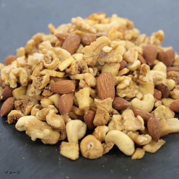 | 原材料名 | ドライいちじく(イラン)、くるみ、スクエアバナナチップス(バナナ、ココナッツオイル、砂糖)、アーモンド、カシューナッツ ※本品製造工場では小麦、そば、卵、乳成分、落花生、えび、かにを含む製品を製造しております。 |