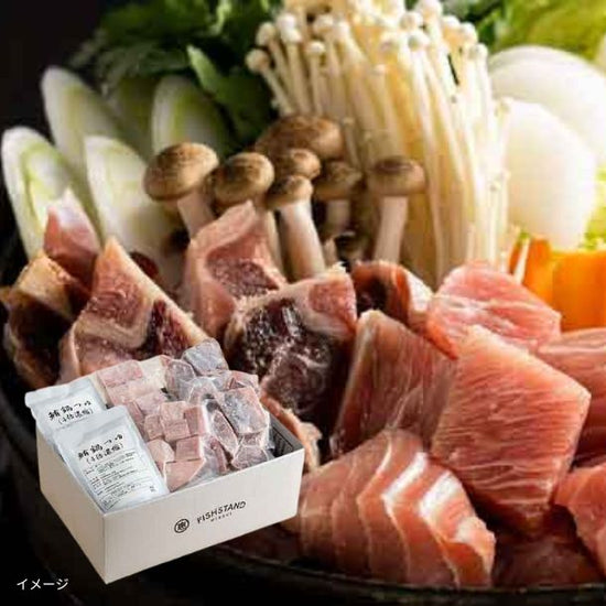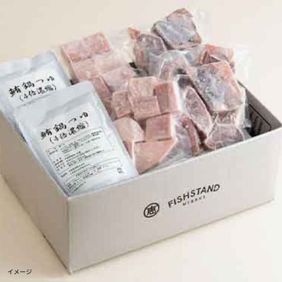 | 内容量 | 目鉢鮪骨付きカマ500g(250g×2)、目鉢鮪ハラモ300g(150g×2)、まぐろ鍋専用濃縮つゆ280g(140ml×2) |
