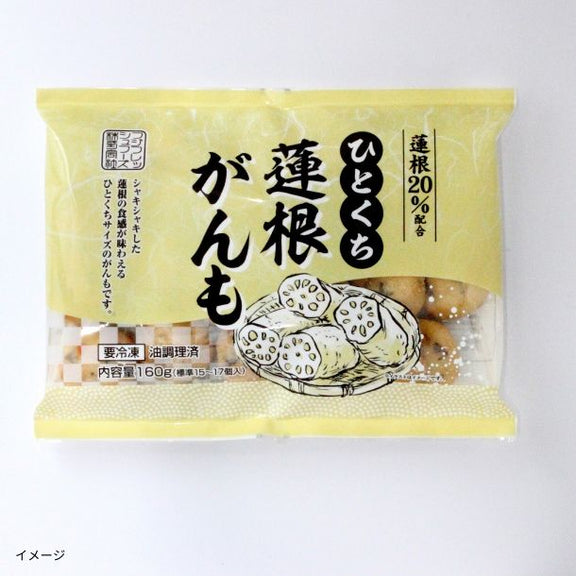 シャキシャキした蓮根の食感が味わえるひとくちサイズのがんも・れんこんを約20%配合し、れんこんの食感を楽しめるがんもです。