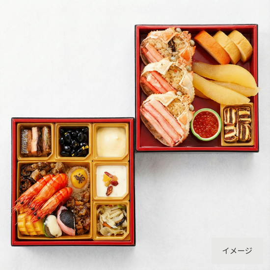 北の大地と海の恵みを、新春の食卓へ。北海道の豊かな自然が育んだ山海の幸を、ふんだんに詰め込みました。 お正月には欠かせない「黒豆」や「数の子」はもちろん、脂の乗った「にしん」や「桜ます」、旨味たっぷりの「紅ずわいがに」など、厳選した食材を使用。