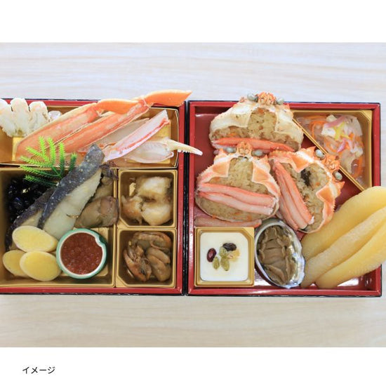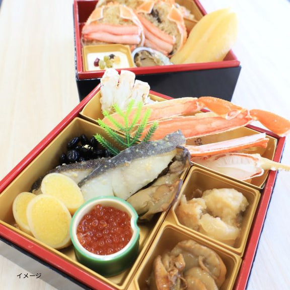 北海道産の「いくら醤油漬」や「味付数の子」はもちろん、牡蠣やアンコウといった通好みの珍味もラインナップ。さらにデザートには、十勝産チーズを使った「ドライフルーツとナッツのカッサータ」を添えて、和洋の味覚を最後まで飽きさせない構成に仕上げました。 本来なら高級重箱の一角を担うはずだった全13品。品質・味ともに間違いのない実力派おせちです。