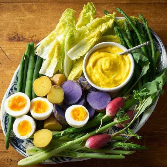 | 原材料名 | マヨネーズ(食用植物油脂、卵黄、醸造酢、その他)(国内製造)、食用植物油脂(ひまわり油、オリーブ油)、おろしにんにく、ぶどう酢、りんご酢、食塩、サフランパウダー、ターメリックパウダー/増粘剤(キサンタンガム)、香辛料抽出物、(一部に卵・小麦・大豆・りんご・ゼラチンを含む) |