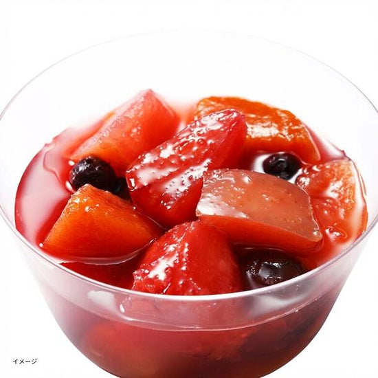 イチゴシロップがベースのフルーツポンチ。よく冷やしてそのままデザートにしたり、炭酸水を注いで爽やかに味わったりと、たのしみ方はいろいろ。