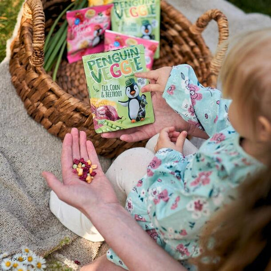 パリパリおいしいえんどう豆&とうもろこし&ビーツ有機野菜のみを使用し、サクサク食感に仕上げました。